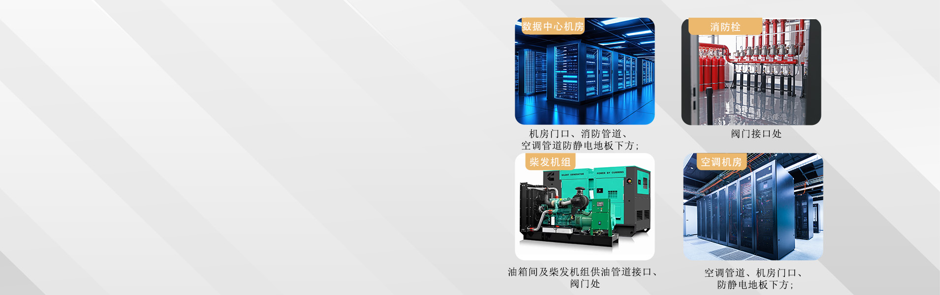 XW-DC-02廣泛運(yùn)用于數(shù)據(jù)中心機(jī)房、消防栓、柴發(fā)機(jī)組、空調(diào)機(jī)房等所有需要監(jiān)控漏液的場(chǎng)所。